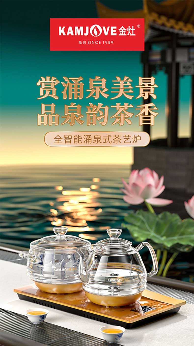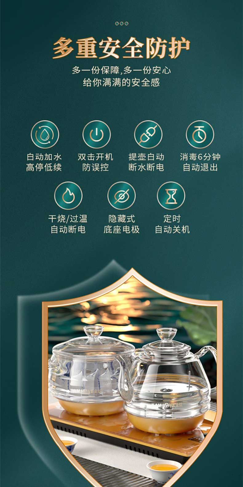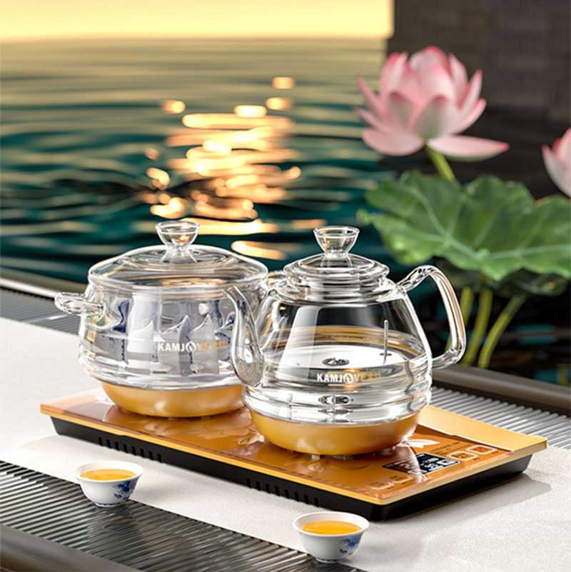 金灶全智能玻璃电茶壶0.8L+0.8L三合一底部上水