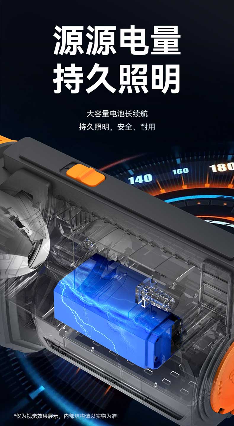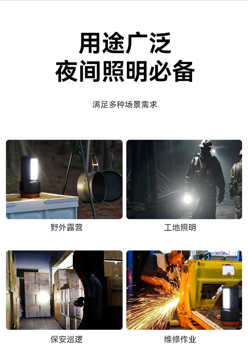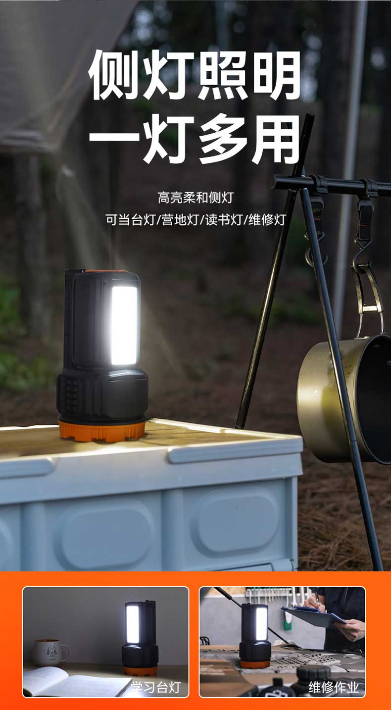 单位:个 KM-2702 强光手电筒/探照灯/户外应急灯,额定容量2700mA,多功能LED侧灯,AC电源线充电,防摔防滑耐冲击,质保一年。
