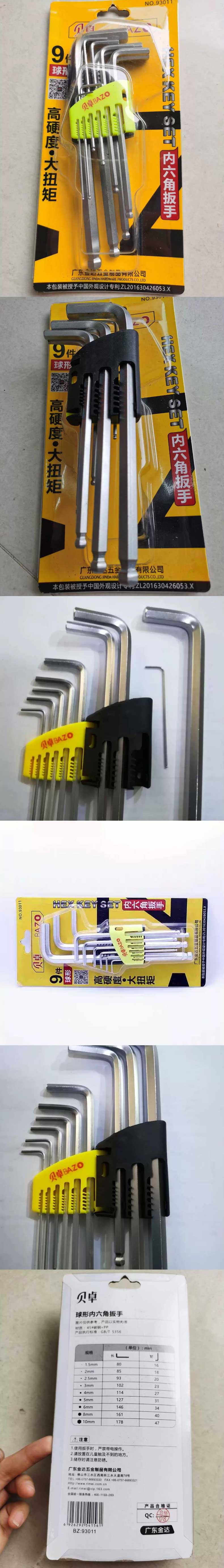 单位:套 #93011 9件套高硬度批头起子螺丝刀板手L型加长球头内六角扳手螺钉