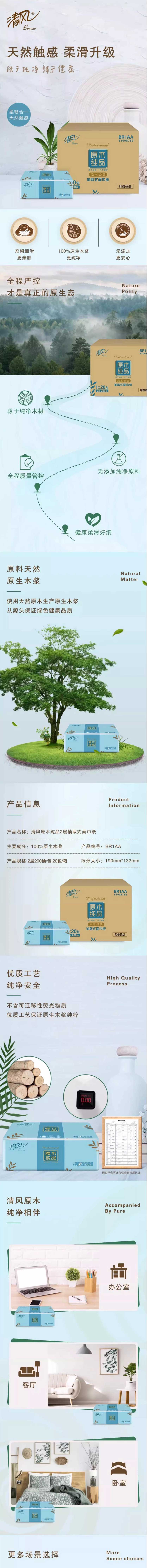 清风原木纯品面巾纸200抽