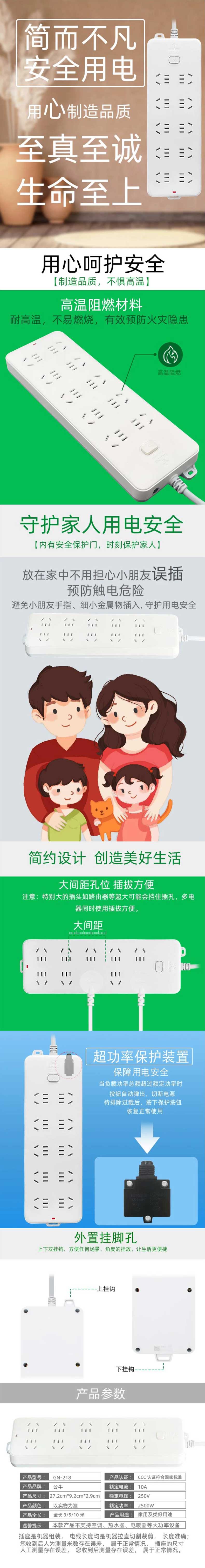 单位:个 GN218-3 十联过载保护插座/排插/插线板,带总控开关