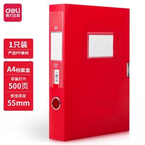 得力中国红PP档案盒 5.5cm
