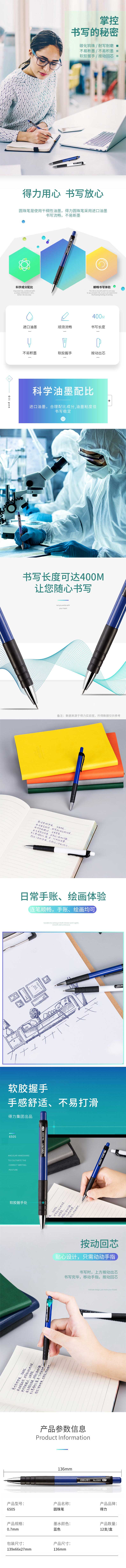 得力按动圆珠笔 0.7