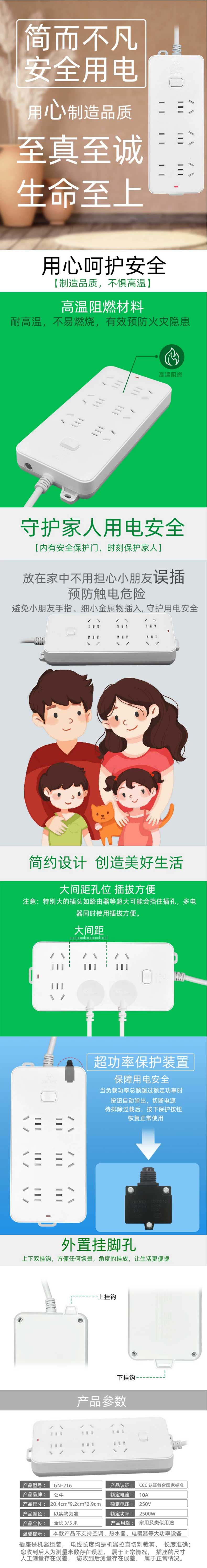 单位:个 GN216-3 六联插座/排插/插线板,带总控开关