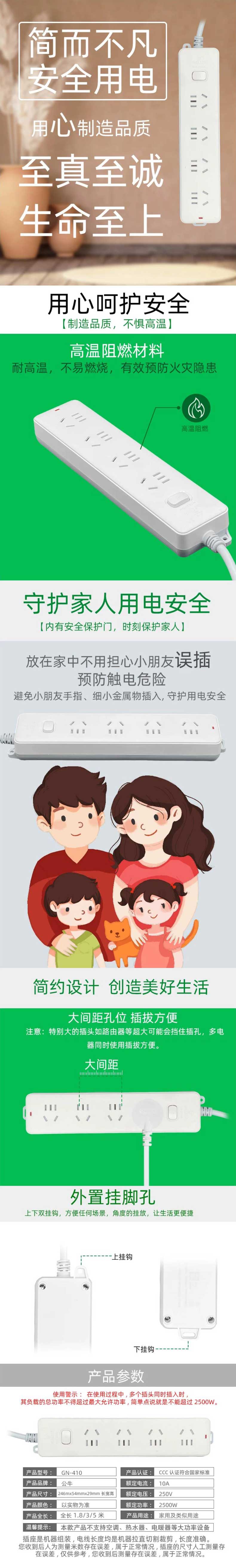 单位:个 GN410-1.8 四联插座/排插/插线板,带总控开关