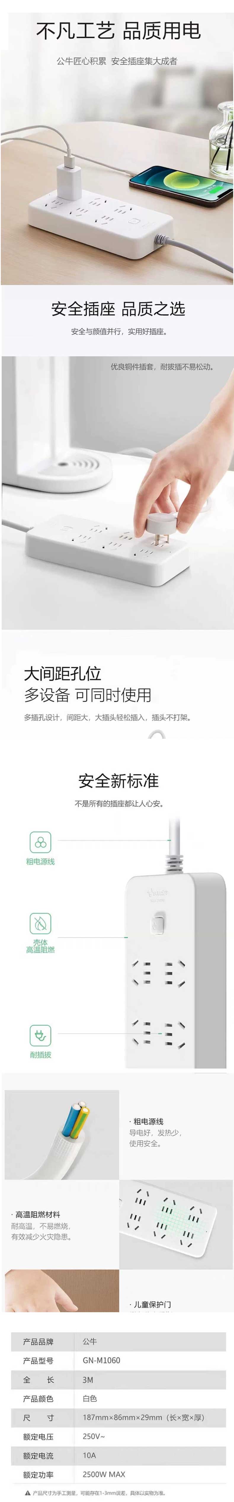 单位:个 M1060-3 六联插座/排插/插线板,带总控开关