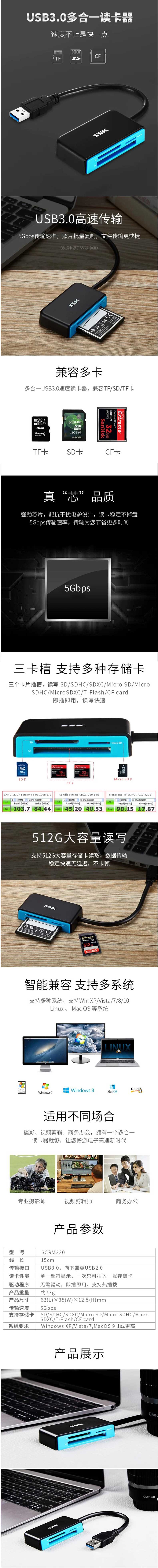 单位:个 SCRM330 高速多合一读卡器,适用于TF卡/SD卡