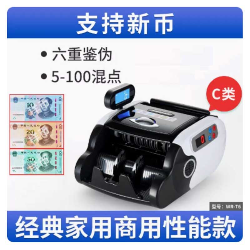 单位:台 T6C C类验钞机,支持新币以及新旧币混点,6重鉴伪方式,免升级,质保一年,配件除外。