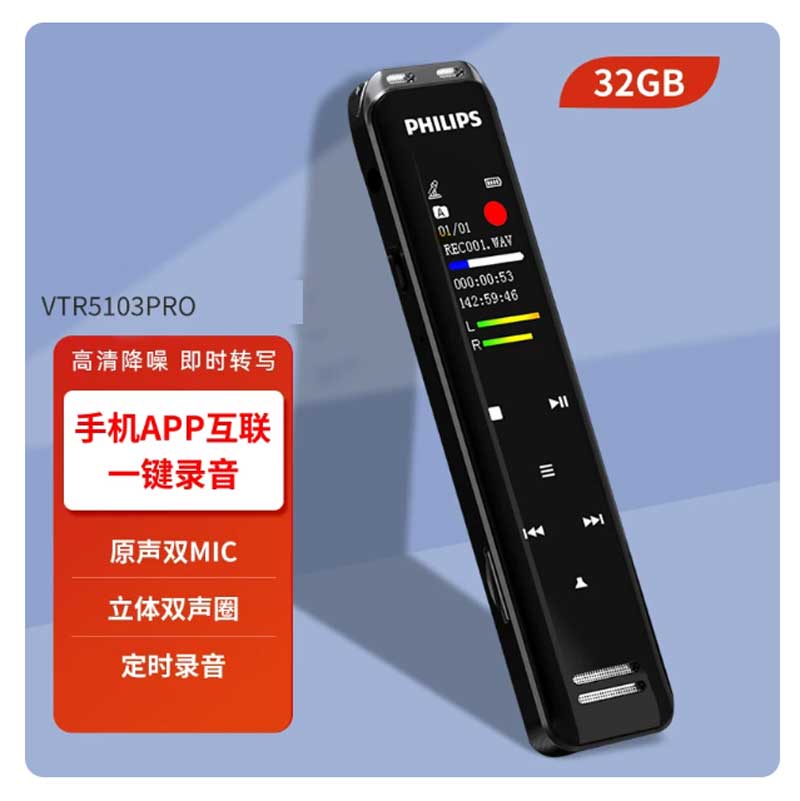 飞利浦录音笔 32G双麦克转文本/翻译