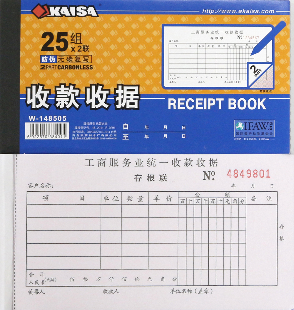 凯萨二联收据 工商项目