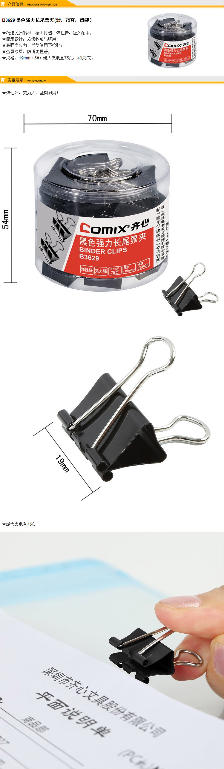 齐心5号长尾夹