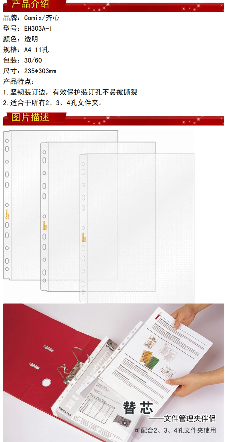 齐心11孔资料备用袋
