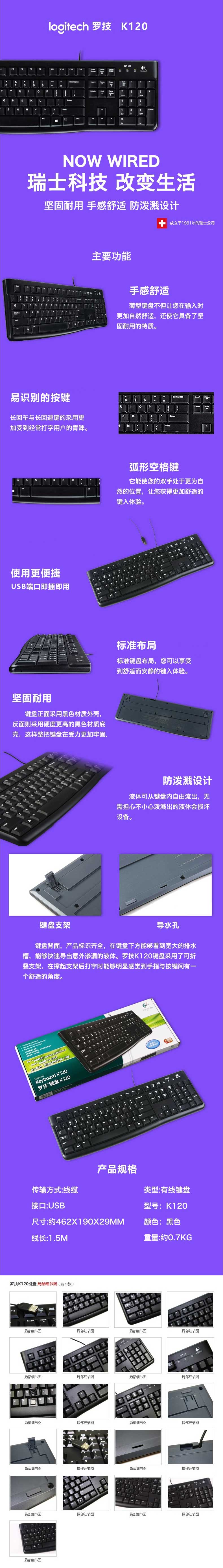 单位:个 K120 防水,带键盘支架,即插即用,线长1.5m