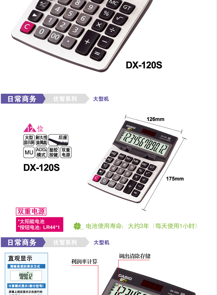 单位:台 DX120S 12位 光+LR44 175*126*36mm