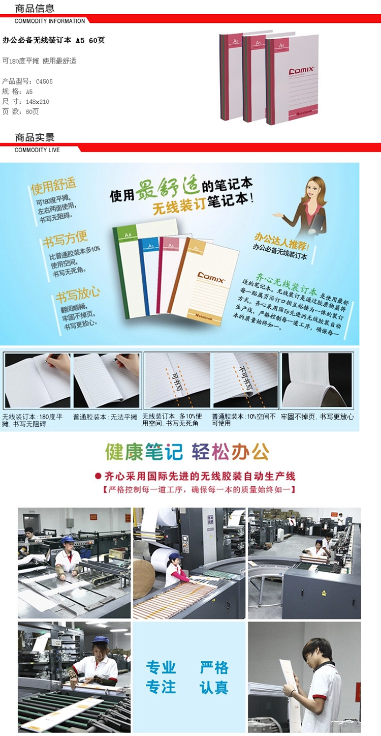 单位:本 C4505软抄本/软皮本,可180°平摊,包装率1/10/160