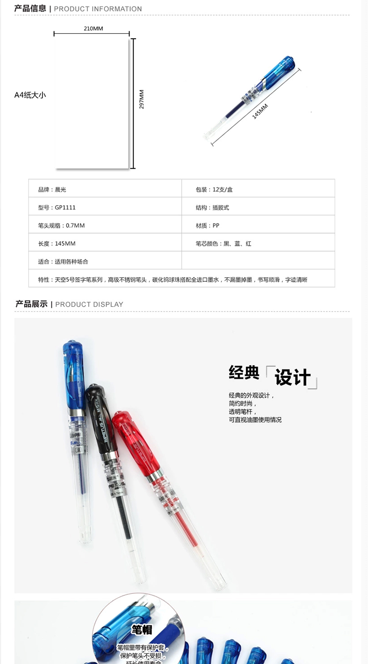 单位:支 GP1111子弹头动力签字笔/碳素笔 包装率1/12/144