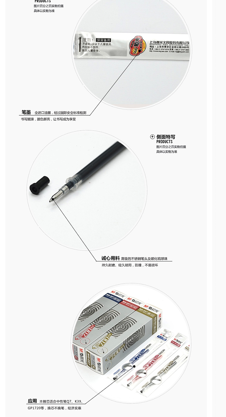 单位:支 MG007子弹头笔芯/中性替芯 包装率1/20/240