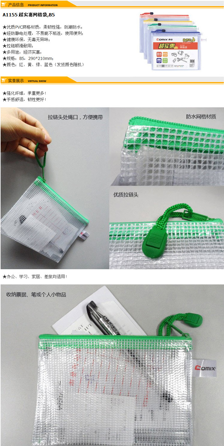 齐心网格拉链袋B5