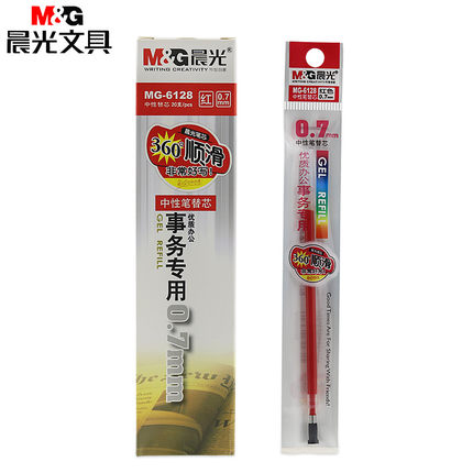单位:支 MG6128子弹头笔芯/中性替芯 包装率1/20/240
