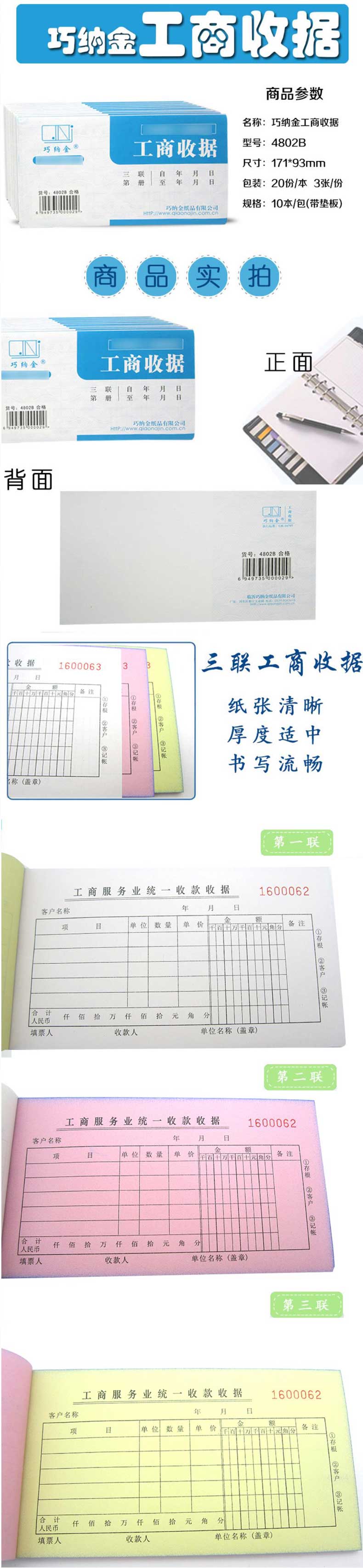 单位:本 4802B收款单据48K 20份 包装率1/10