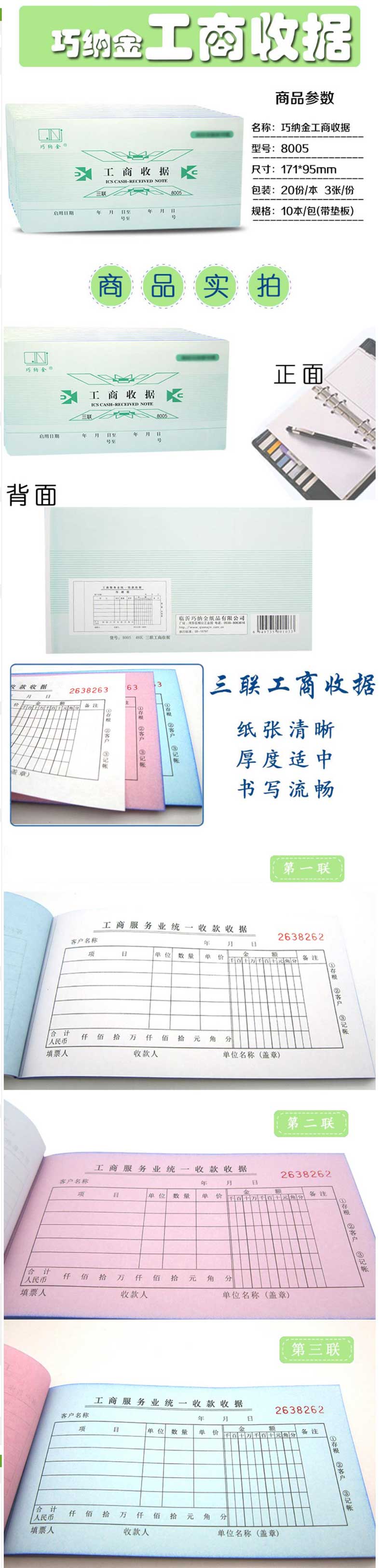 单位:本 #8005收款单据48K 20份 包装率1/10