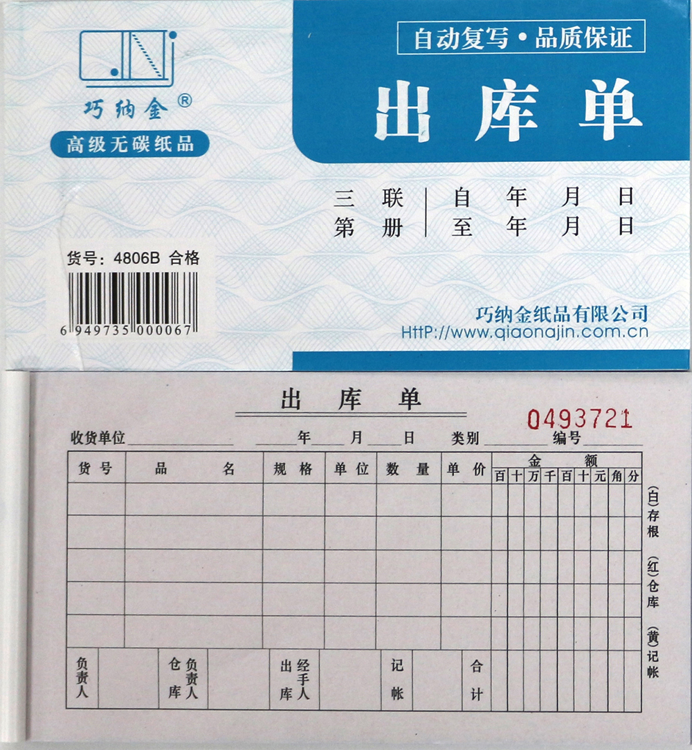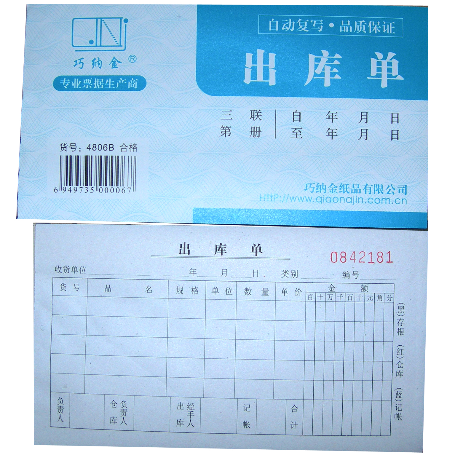 特点:自动复写,自带垫本。(货号、品名、规格、单位、数量、单价、金额。)