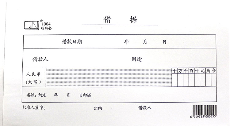 巧纳金单联借据