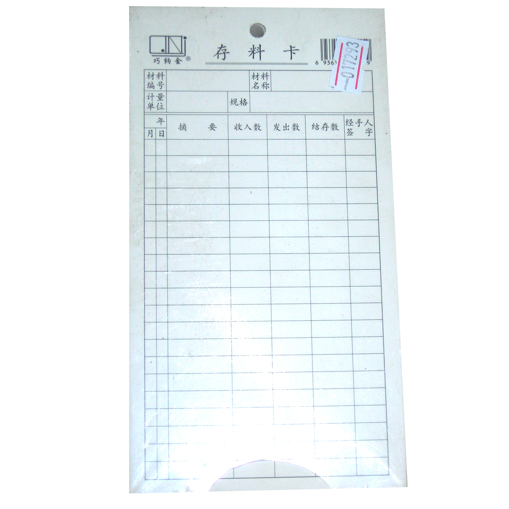 巧纳金存料卡