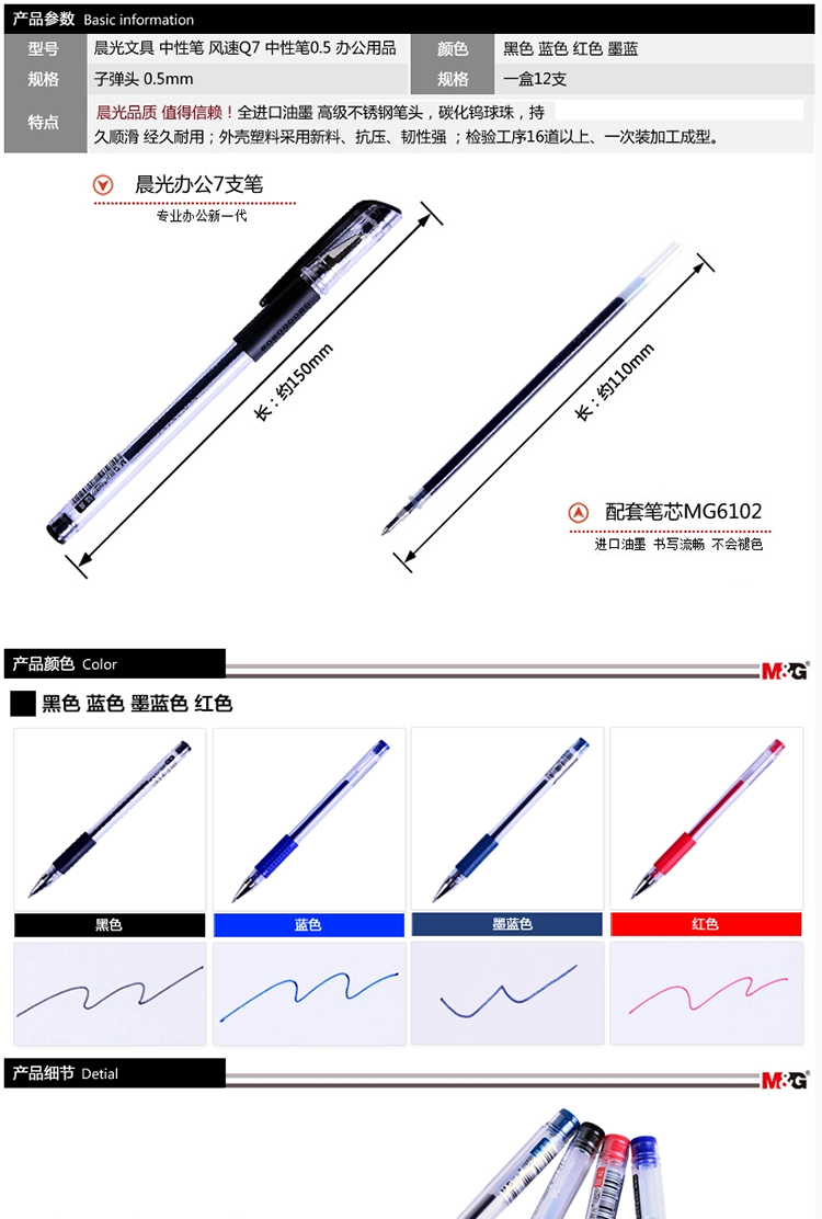 单位:支 Q7子弹头风速签字笔/碳素笔 包装率1/12/144