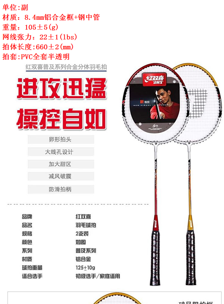 红双喜羽毛球拍 铝合金带球