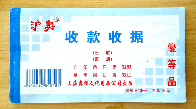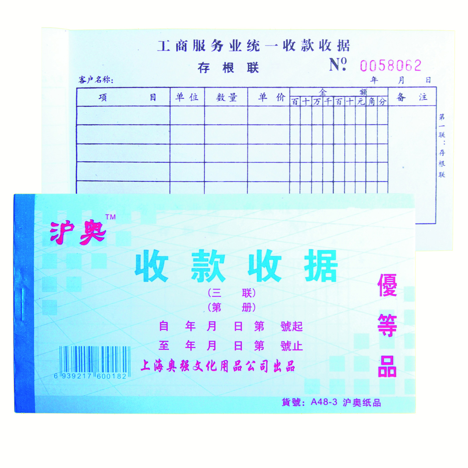 单位:本 A48-3收款单据48K,20份,白/粉/绿,包装率1/20/480