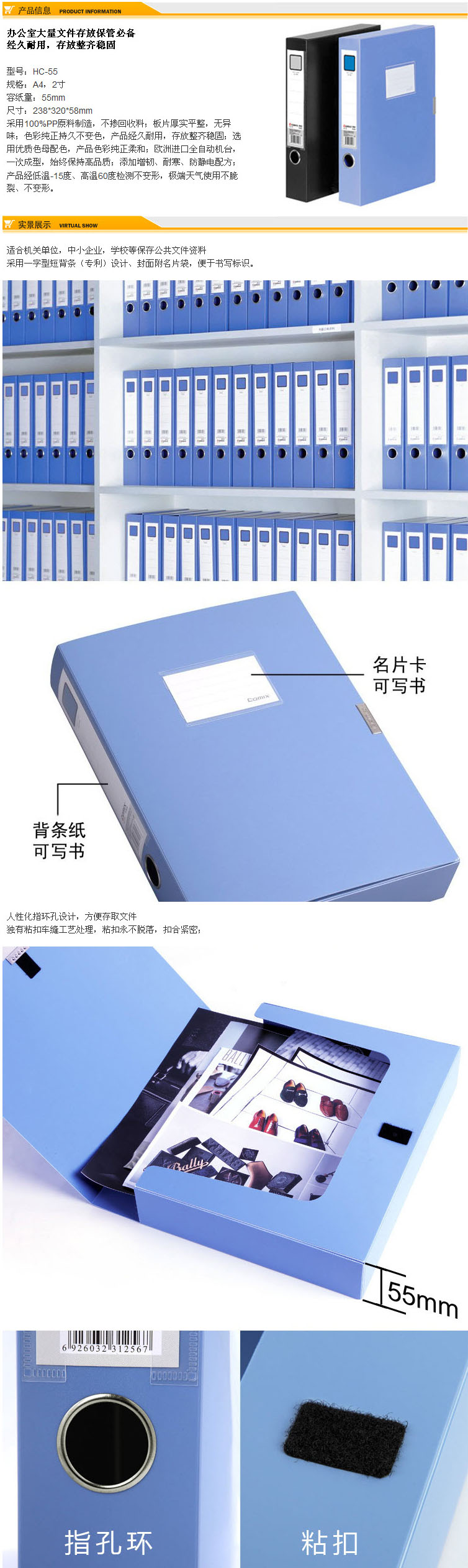 单位:个 HC55 2寸A4蓝色 包装率 1/18