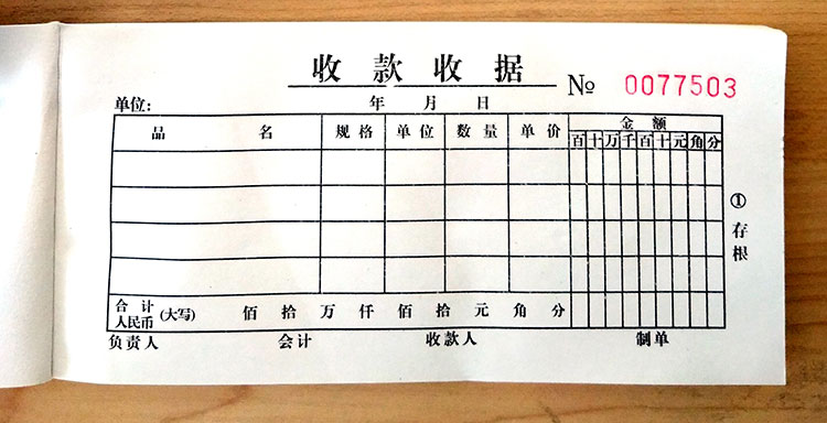 国产三联收据 品名