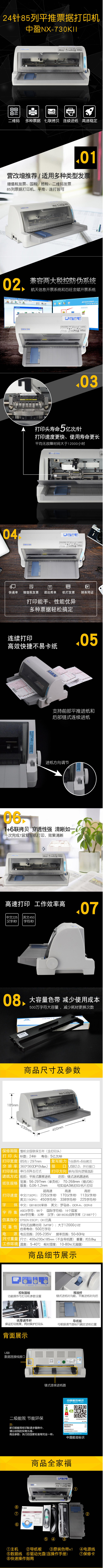 单位:台 NX-730KII 85列票据打印机,可打印1+6联发票/税票/出库单/快递单,适配CS24HD色带,保修一年。